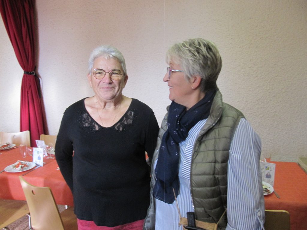 Mardi 28 Octobre 2025 : Les photos du repas des “Cheveux blancs” offert par le CCAS le dimanche 19 Octobre seront prochainement sur le Site. Photo, Michèle membre du CCAS et Monique discutent avant de passer à table . . .