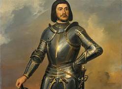 1440 : Mort de Gilles de Rais : Ancien compagnon d’armes de Jeannes d’Arc, Gilles de Rais et pendu et brûlé le 26 octobre 1440, sa vie tumultueuse, ses crimes et sa mort vont inspirer deux siècles plus tard la légende de “Barbe bleue”. Illustrations, Gilles de Rais et Jeanne d’Arc et Gilles de Rais. . .