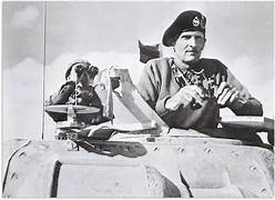 1942 : La bataille d’El-Alamein : Le 23 Octobre 1942, l’Afrikakorp du maréchal Rommel recule devant El-Alamein devant la VIIIème armée britannique du général Montgomery. Photo du bas, le général Montgomery dans son char de combat. . .