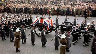 1965 : Mort de Churchill : Le 24 janvier 1965, à 8h, Sir Winston Spencer Churchill rend son dernier soupir. Il a droit a des funérailles nationales un privilège réservé aux souverains. . .