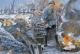 1916 : Mort du lieutenant colonel Emile Driant et de ses chasseurs au bois des Caures : Dans la bataille de Verdun, les premières attaques allemandes se portent sur les bataillons du lieutenant colonel Emile Driant? Posté dans le bois des Caures, l’officier et ses hommes résistent au pillonnage d’artillerie et à l’assaut de l’infanterie. Il tombe lui même le 22 février vers 15h00 frappé d’une balle à la tempe. Il est tué comme 1 700 de ses 2 200 chasseurs. . .