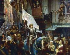 1429 : Jeanne d’Arc rencontre le roi à Chinon : Le 25 février 1429, Jeanne d’Arc rencontre le roi Charles VII à Chinon. Venue tout droit de Vaucouleurs aux marches de Lorraine, la jeune paysanne illettrée était attendue avec une certaine impatience et beaucoup d’appréhension. .Illustrations, Chinon, Jeanne d’Arc et Charles VII . . .