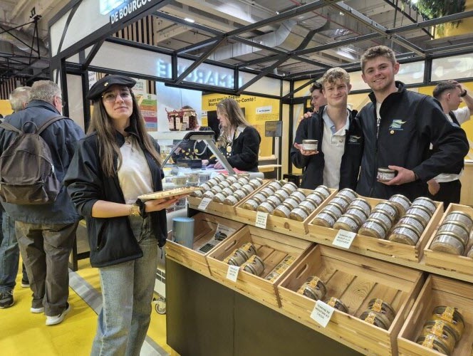 Mercredi 25 Février 2026 : La Saône et Loire à l’Honneur, Camille, Nicolas et Aloïs du Lycée de FONTAINES font déguster leurs terrines au “Salon de l’Agriculture” à PARIS. . .