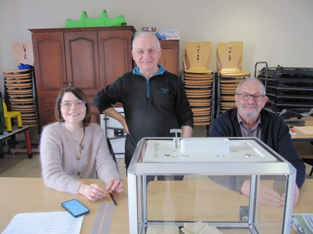 Dimanche 15 Mars 2026 : Dans notre commune de DICONNE, n’ayant qu’une seule liste, le résultat des Elections Municipales est donc sans surprise : La liste de Marion SAVOY est élue dans sa totalité : 248 inscrits, 131 votants, 95 listes complètes, 20 bulletins rayés, 16 enveloppes vides. Pas de Bureau de Votes la semaine prochaine, pour changer, retrouvons nous pour la pêche à la truite dans notre étang. . . Ils ont tenus le Bureau de Votes aujourd’hui, absent sur les photos Jean-Marc et Christiane. . .