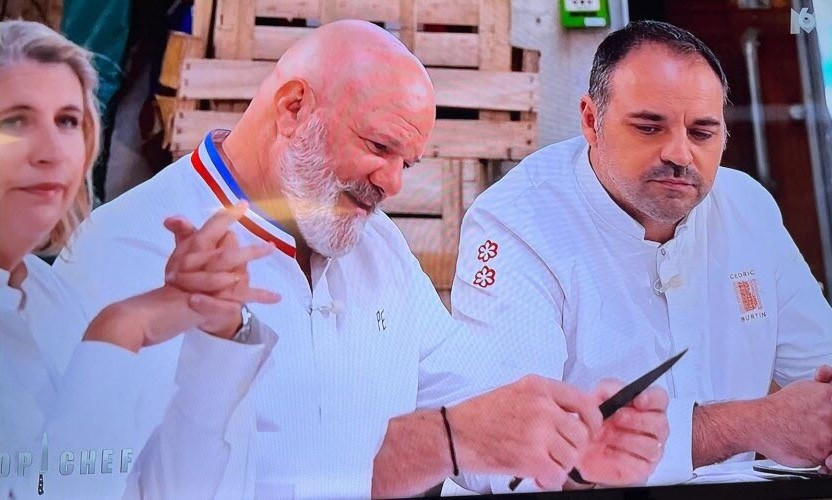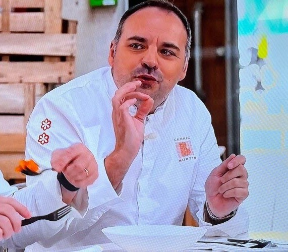 Jeudi 26 Mars 2026 : Dans l’émission “Top Chef” Cédric BURTIN le chef étoilé du restaurant de Saint-Rémy aux côtés de Philippe ESCHEBEST enthousiasmé par le plat du Maconnais Antoine GARCIA. . .
