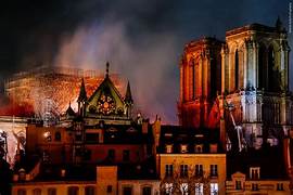 2019 : Notre Dame de Paris en feu : Le lundi 15 avril 2019, à 18h54, une caméra de la Préfecture de police de l’Ile de la Cité, au coeur de Paris, a détecté de la fumée qui sortait de la flèche de la cathédrale. C’était l’amorce d’un brasier qui allait détruire la charpente de Notre Dame de Paris, en partie vielle de huit siècle. La flèche et la voûte allaient rapidement s’effondrer à leur tour, mais au prix d’un effort surhumain, les pompiers allaient toutefois préserver l’essentiel de la structure ainsi que le façade et ses deux tours. La France et une grande partie de la planète sont demeurées en état de sidération devant cet incendie, télévisé en direct dans le monde entier. . .