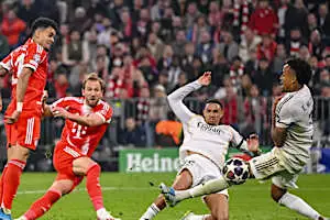 Jeudi 16 Avril 2026 : Le BAYERN de MUNICH s’envole en 1/2 finale après sa victoire contre le REAL de MADRID, ou il rencontrera le PSG. La photo représente une phase du match d’hier soir. .