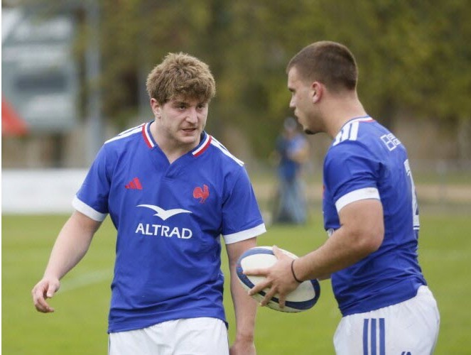 Mardi 07 Avril 2026 : Né à CHALON le jeune Noha TRAINI a disputé hier son premier match des moins de 18 ans sous le maillot de l’équipe de France à 15 contre la GEORGIE au poste de pilier. . Noha à gauche sur la photo. . .